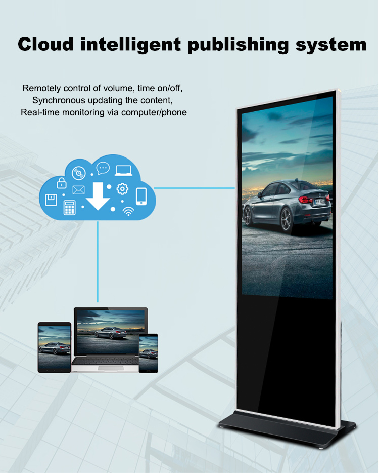 49″ Floor standing digital signage kiosk outside touch screen poster advertising display, RK3288 quad core processor, RAM 1G + ROM 32G , Android 11.0, 49 inch 1920*1080P, support wifi, bluetooth, Ethernet.